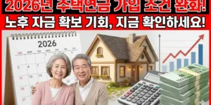 ✅ 2026년 주택연금 가입 조건 완화, 나이와 주택 가격 기준 확인하고 노후 대비하세요! ✅ 완화된 조건으로 더 많은 금액을 받을 수 있는지, 예상 수령액 계산 방법 알아보기! ✅ 주택연금 가입, …