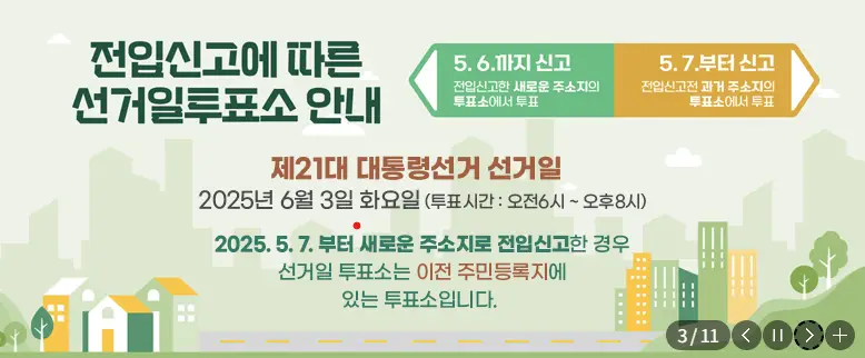 - 5월 7일 이후 신고는 모두 이전 주소지에서 투표